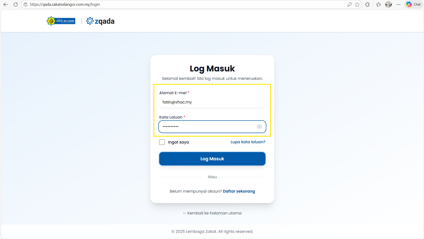 Langkah 1: Klik pautan QZada qada.zakatselangor.com.my
