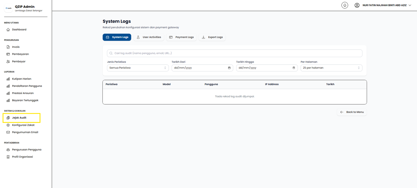 Langkah 1: Klik menu Jejak Audit.