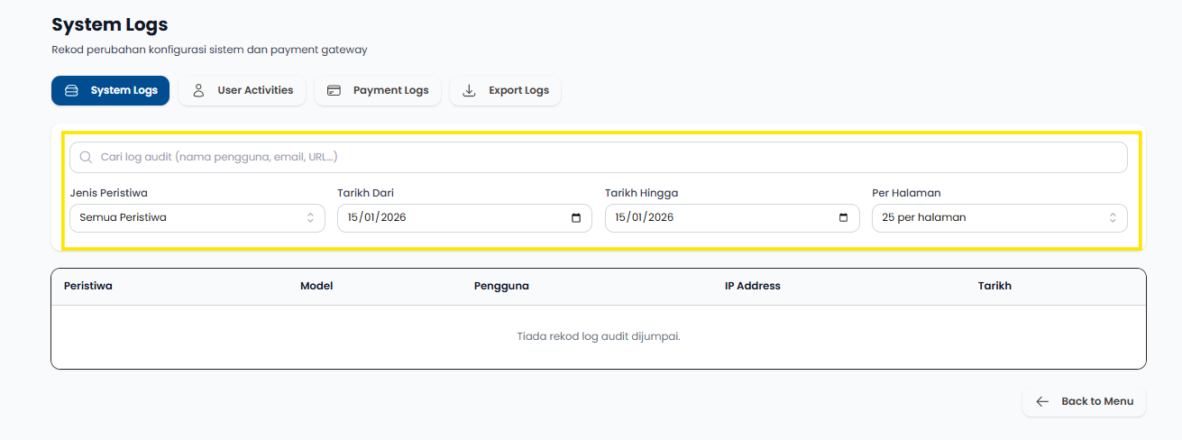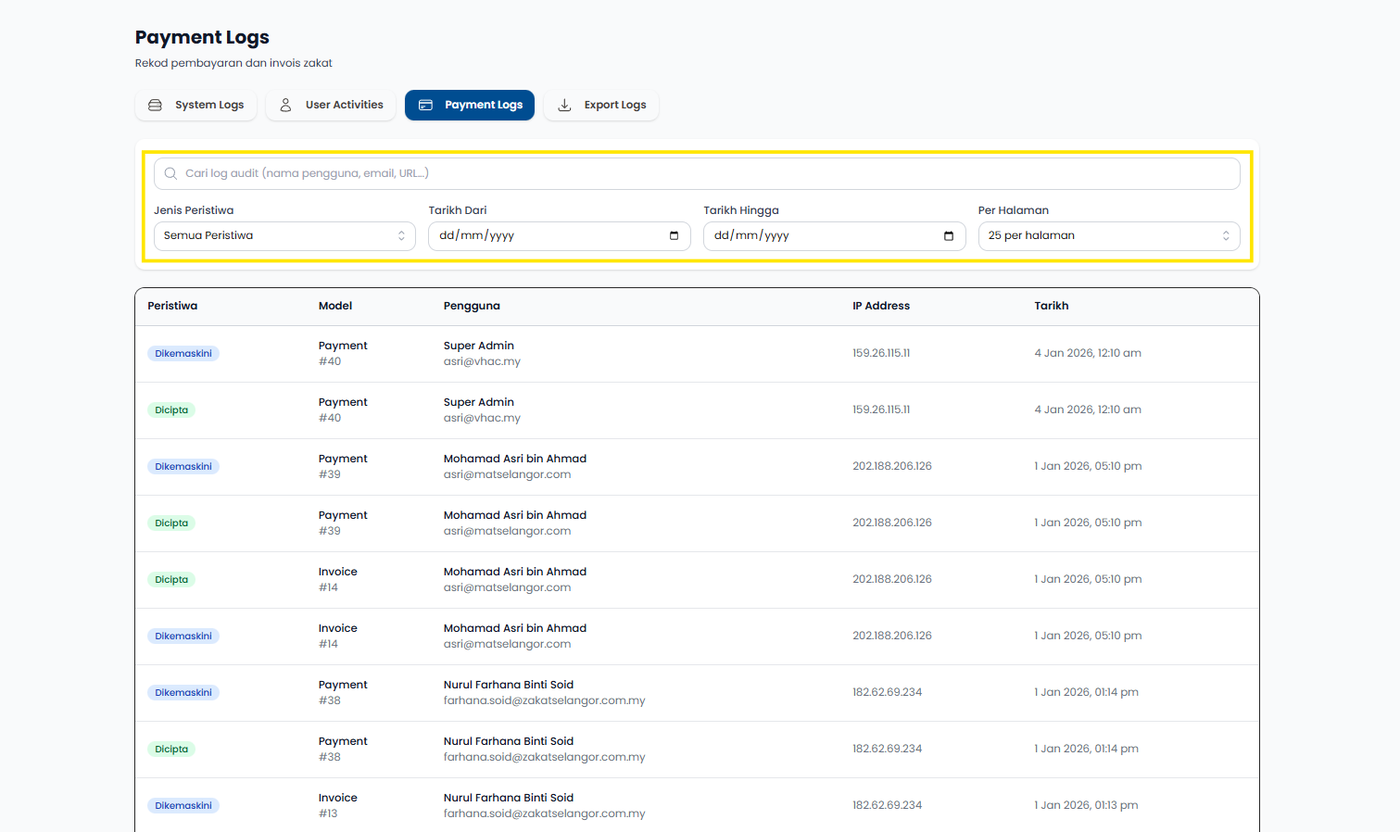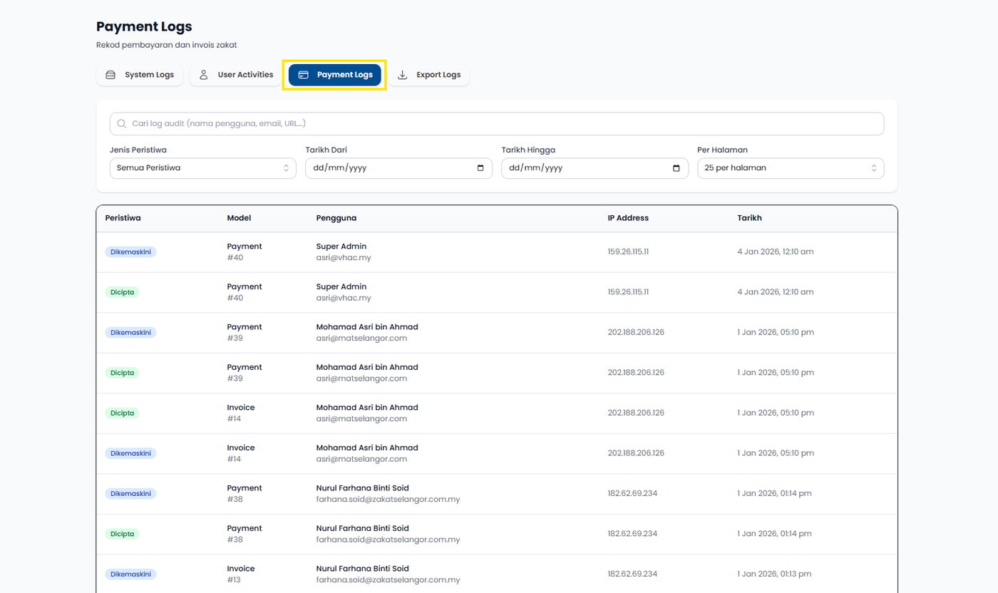 Langkah 1: Klik pada Payment Logs