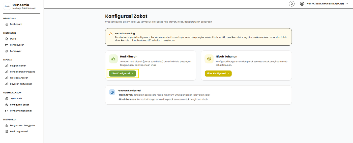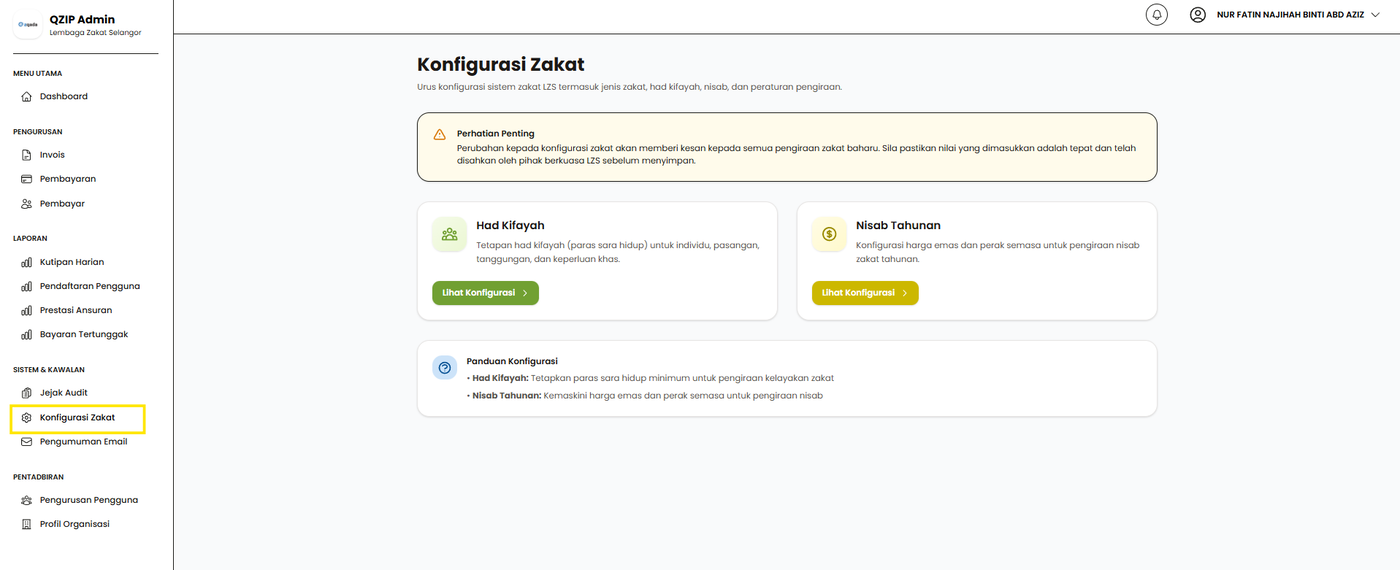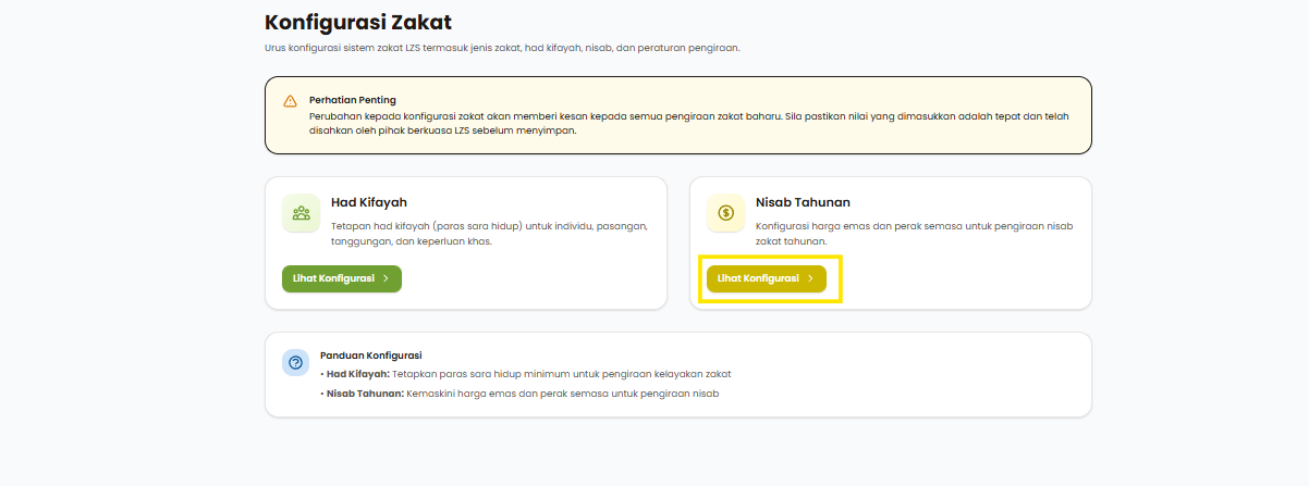 Langkah 1: Klik pada menu Konfigurasi Zakat.