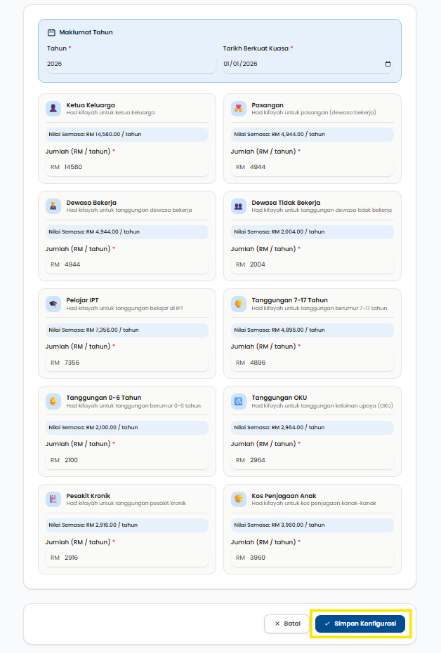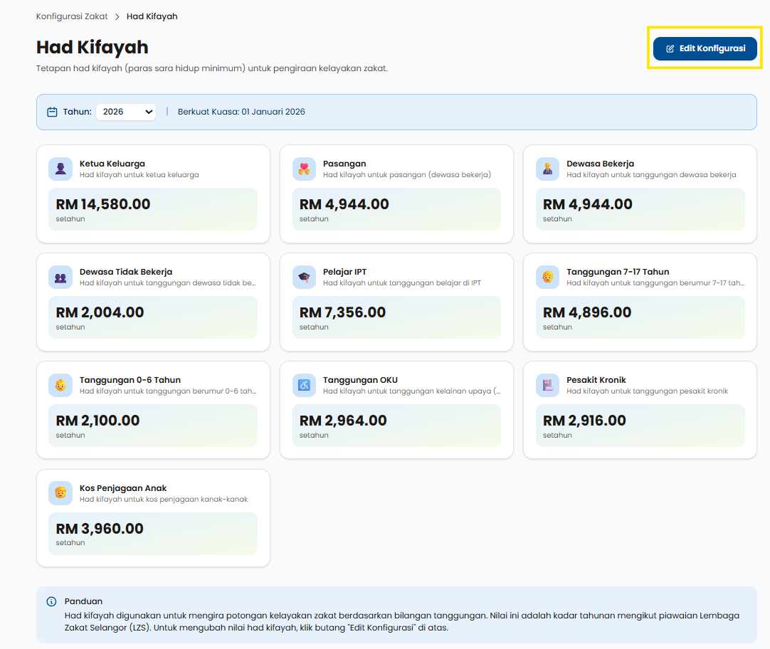 Langkah 3: Klik pada Edit Konfigurasi untuk mengedit amaun kadar had kifayah.