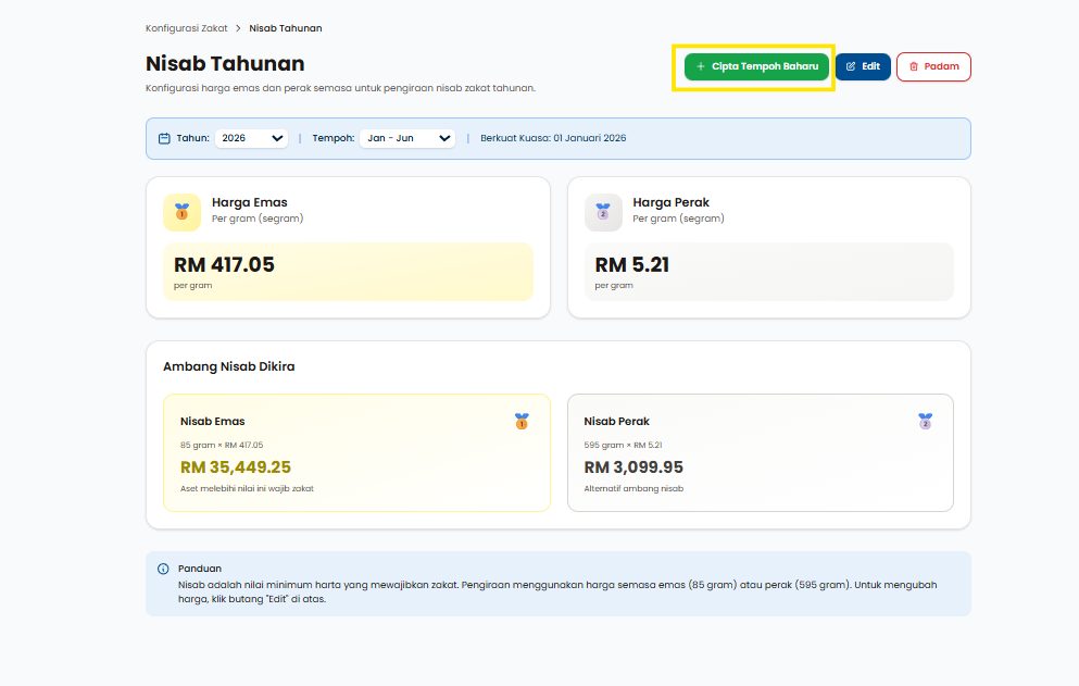 Langkah 2: Klik pada Cipta Tempoh Baru untuk mencipta jenis nisab tahunan yang baru.