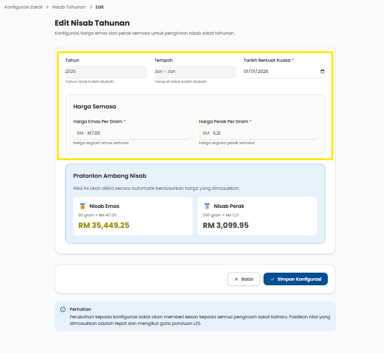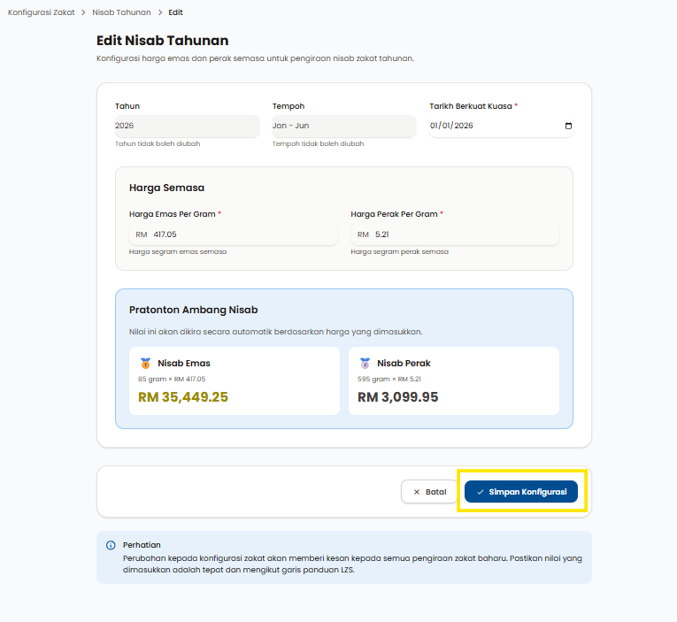 Langkah 5: Klik pada Edit untuk mengubah data nisab tahunan yang sedia ada.